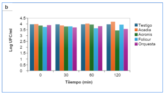 - Ensayo in vitro con recuento de unidades formadoras de colonias (UFC/ml) en medios selectivos.