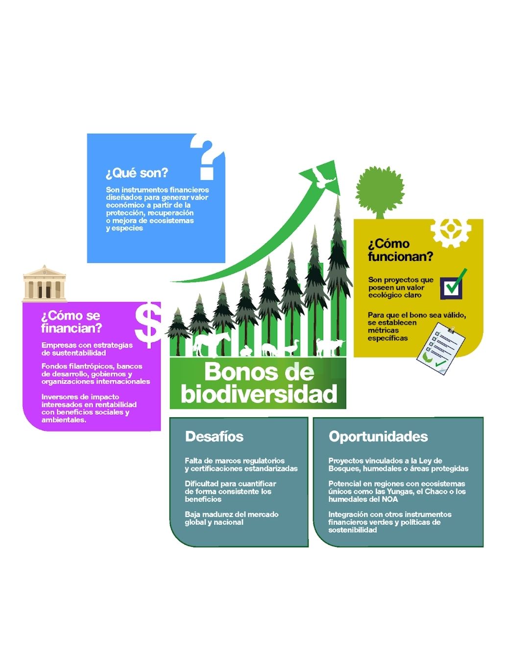 Los bonos de biodiversidad son una herramienta emergente en la conservación ambiental. Buscan incentivar la protección y restauración de ecosistemas y están diseñados para financiar acciones que preserven la diversidad biológica y sus servicios ecosistémicos asociados. Sus compradores (empresas, gobiernos o filántropos) financian proyectos que generan beneficios para la biodiversidad.