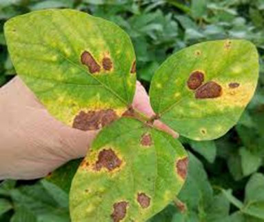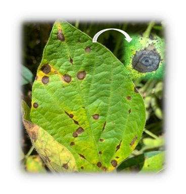 Las principales EFC son: tizón de la hoja y mancha púrpura (causado por Cercosporakikuchii T. Matsu & Tomoyasu Gardner) (Figura 1), antracnosis, (Colletotrichumtruncatum (Schw.) Andrews & WD Moore) (Figura 2), mancha marrón (Septoriaglycines Hemmi) (Figura 3), tizón de la vaina y tallo (PhomopsissojaeLehman) (Figura 4), mildiú (Peronosporamanshurica (Naum.) Syd: Gäum) (Figura 5), mancha anillada (Corynesporacassiicola (Berk&Curt.) Wei) (Figura 6), mancha foliar por Alternaria (Alternariaspp.) (Figura 7), pústula bacteriana (Xanthomonascampestrispvglycines (Nakano) Dye.) (Figura 8) y tizón bacteriano (Pseudomonassyringaepvglycinea (Coerper) Young, Dye&Wilkie) (Figura 9). Es importante mencionar a la roya de la soja causada por PhakopsorapachyrhiziSydow&Sydow (Figura 10), si bien no es considerada EFC, en el NOA se presenta en los estadios reproductivos de la soja, afectando el área foliar de la misma.